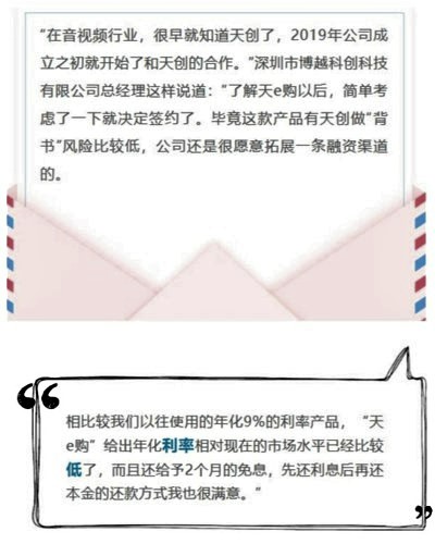 作為一款純互聯(lián)網化產品,“天e購”可依據(jù)歷史交易數(shù)據(jù)、個人征信等數(shù)據(jù),通過大數(shù)據(jù)技術手段,由系統(tǒng)自動完成篩選和評級,自動化批復額度和利率,從而實現(xiàn)全線 上化授信。向天創(chuàng)采購產品,可以直接通過“天e購”獲取信用額度,無需抵押,天創(chuàng)即可立即發(fā)貨。